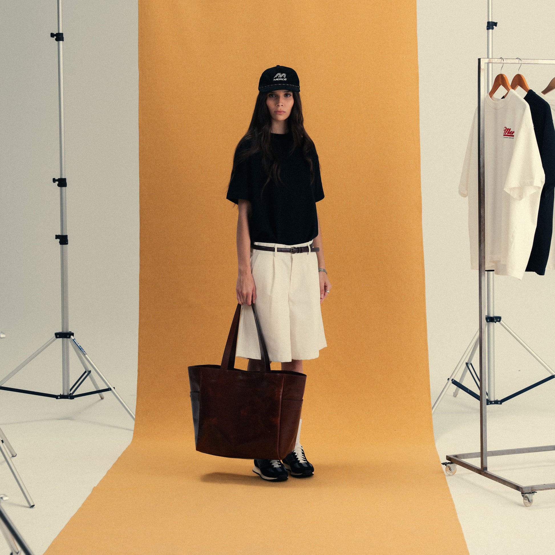 Madeira Bag é confeccionada em couro genuíno estruturado, com marcação da logo "Mercê" em ambos os lados externos. Além disso, contém um bolso interno com fechamento em zíper.